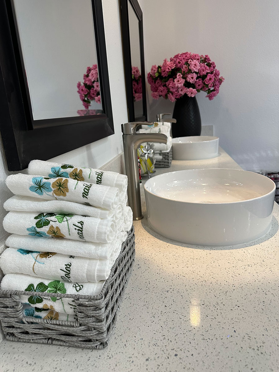 Our Premium and Deluxe services will now feature individual spa sets, featuring Sea Salt Soaks, Sugar Scrubs, Masks & Lotions in a variety of scents, which you can choose!